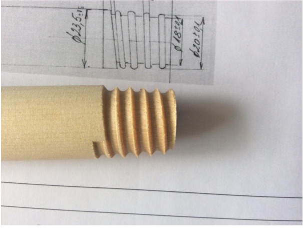 Качественная резьба, нарезанная на станке (не фрезерованная). Не крошится, не трескается. Позволяет многократно вкручивать черенок в щетку.