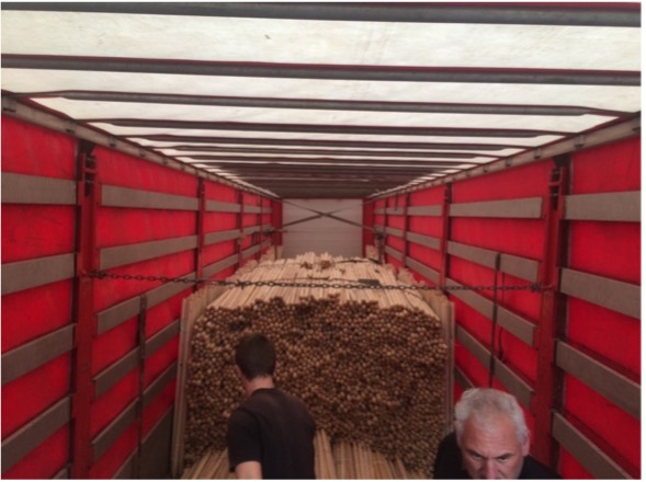 На большие расстояния мы грузим черенки только вручную вдоль бортов машины, при этом делаем вертикальные стойки и стягиваем ремнями для надежной перевозки.